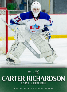 | Carter Richardson | G | 2021-22 | NAHL | Maine Nordiques | NCAA Division I | Lake Superior State University* | Salmon Arm Silverbacks - BCHL, ME Nordiques - NAHL |