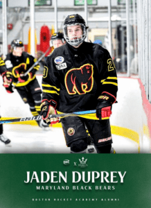 | Jaden Duprey | F | 2020-21 | NAHL | Maryland Black Bears | Seacoast Spartans - NCDC | ||