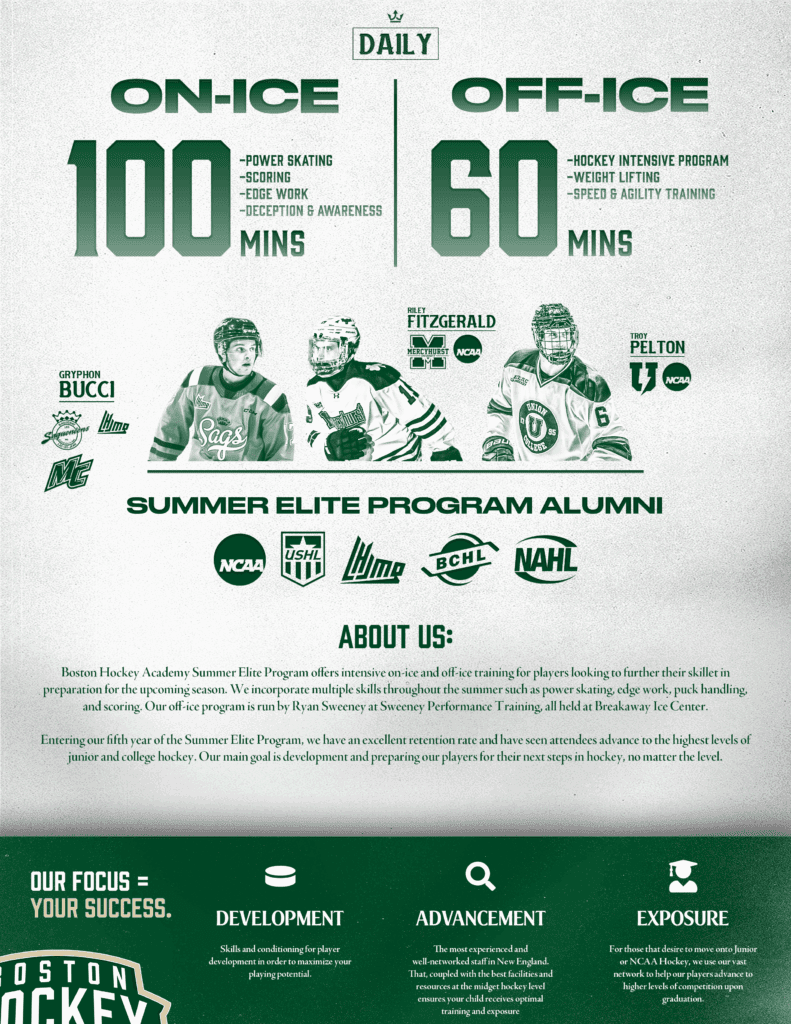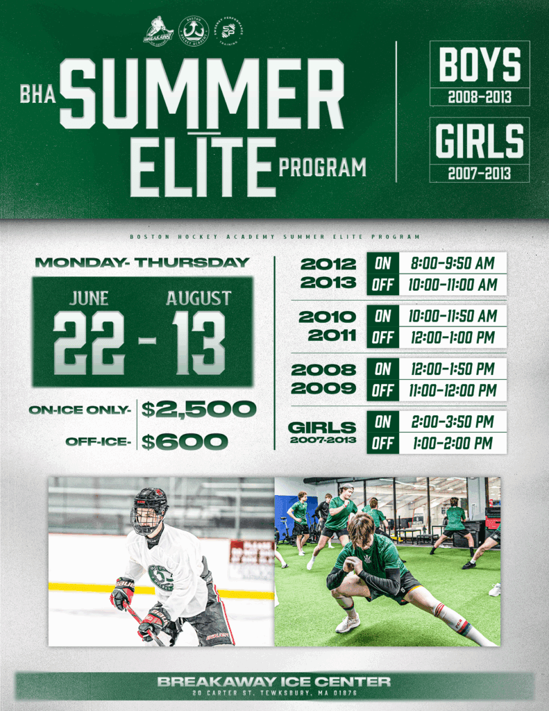 Boston Hockey Academy is proud to announce the 6th Annual Summer Elite Training Program, designed to help athletes elevate their game with professional coaching and state-of-the-art facilities. Join us in 2026 for an unparalleled summer of hockey development!